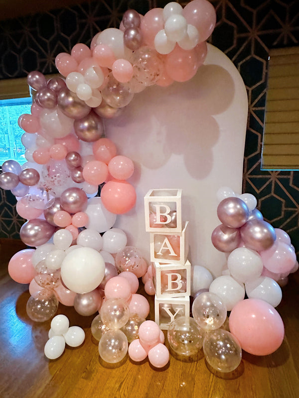 Custom balloon arches for baby showers, creative craft parties, corporate team-building events, and handmade decor across Greater Boston.